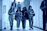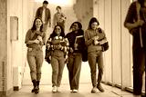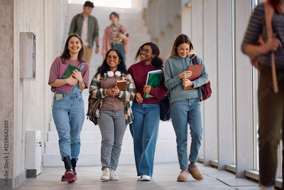 Multiracial group of happy students going on lecture at university.