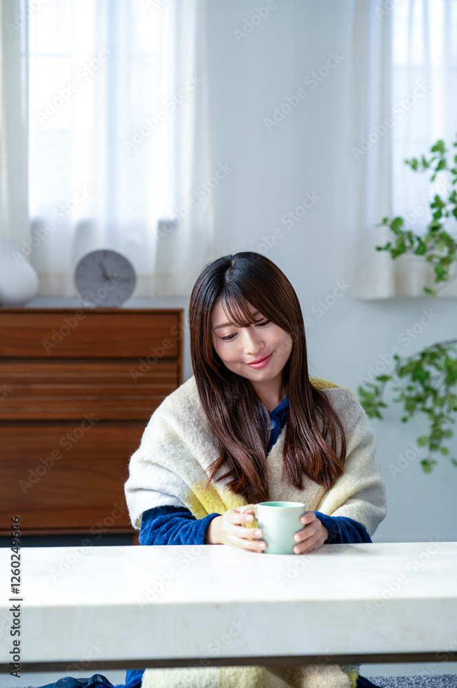 リビングでリラックスする日本人女性