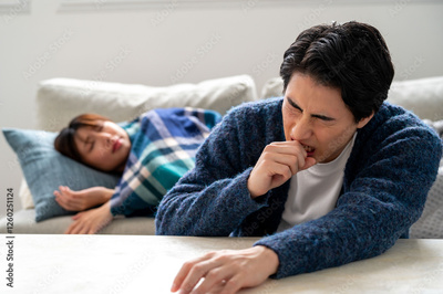 風邪をひいて寝込む日本人男女