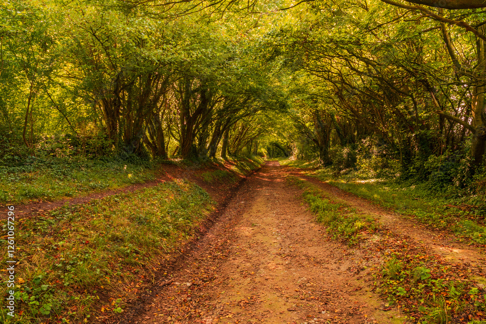 Halnaker Tunnel of Trees in the autumn, West Sussex, UK