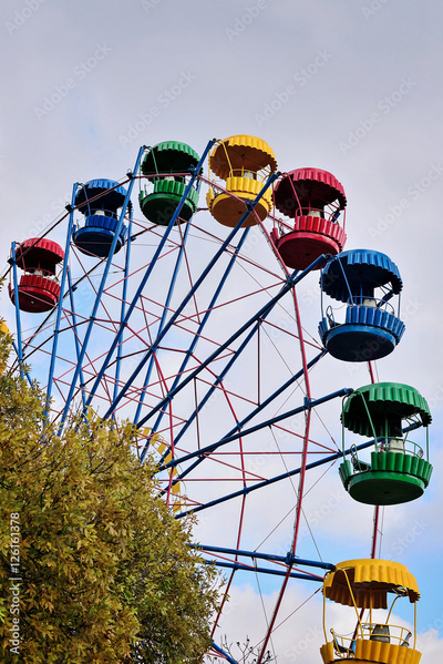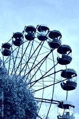 Ferris wheel on the background of blue sky