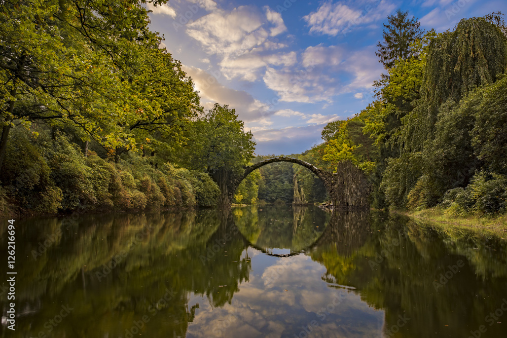 autumn in the park Kromlau, rhododendrons valley, Devil's bridge
