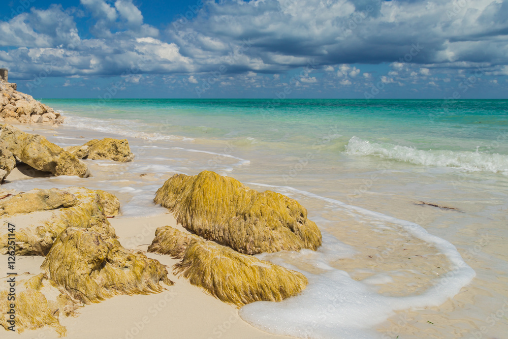 Beautiful beach. Stones on the beach. Caribs. Isla blanca. Mexico