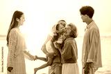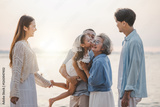 Happy family beach vacations. Elderly retirement grandparent. Elder generation family. Senior.
