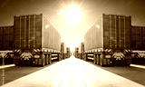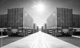 Many Semi Trailer Trucks on The Parking Lot at The Port. Big Rig. Economy Business Transport on Road. Shipping Container Import- Export. Warehouse Port. Trucking. Freight Logistics Transportation.