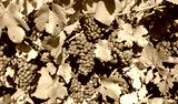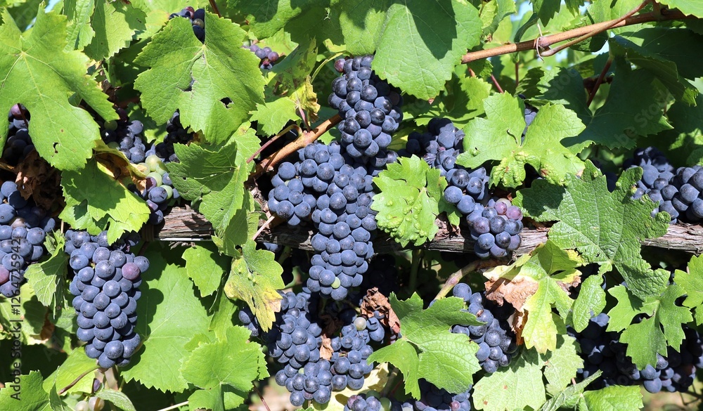 Pinot noir grapes ripening on vine under the sunlight in the end of summer.