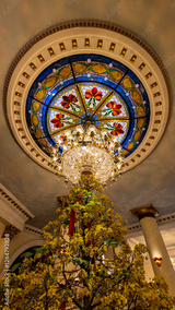 シャンデリアとステンドグラス ホテル コロニアル建築