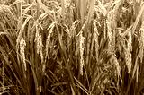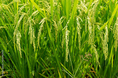 Close up of ripe rice paddy field