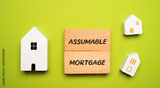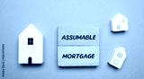Assumable Mortgage concept. Type of home loan that allows a buyer to take over the seller's existing mortgage, including its terms, interest rate, and remaining balance. Blocks and miniature houses