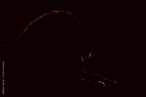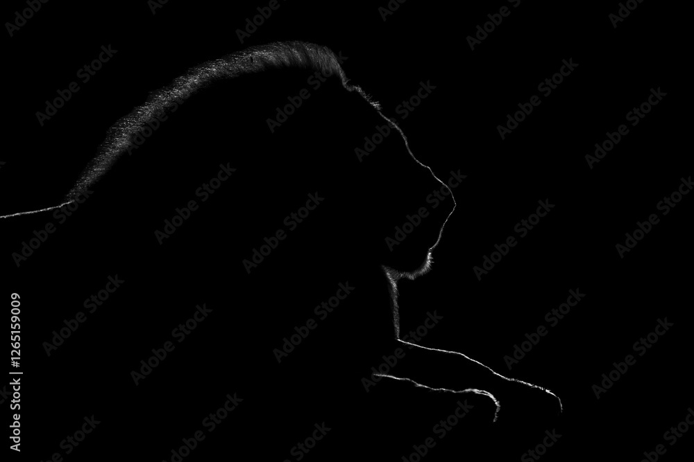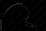 Mono close-up of lion lying in silhouette