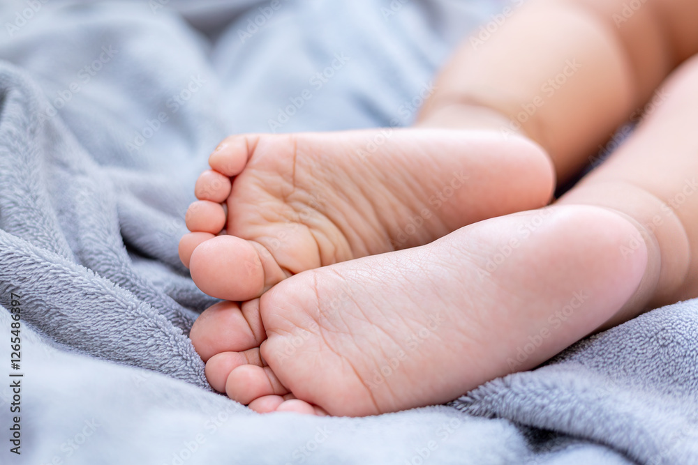 Baby feet,Mother holding Baby Feet in Hands. Legs Newborn in female parents Hand. Small children's Feet in the Mom Palm. Close-up. Little Toes of Child and Woman Hands of Happy Parent.