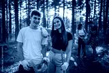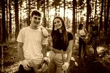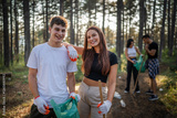 portrait couple in front of group of friends volunteers prepare to collect garbage waste and clean forest nature in summer day slow motion