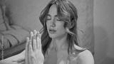 Closeup peaceful woman meditating making namaste pose outdoors. Yogi breathing