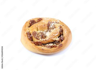 Pastry stuffed with raisins, pine nuts and other ingredients based on Gubana, a traditional dessert of Friuli region in Italy. White background.