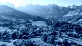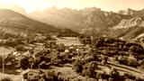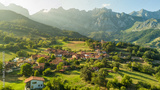 Aerial view of the Mogrovejo medieval village in Cantabria, northern Spain.