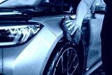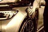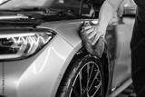 professional man wipes and dries a car with a rag. Car wrapping with protective film