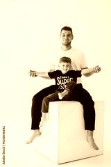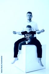 A Playful Father and Son Portrait Captured Beautifully in a Creative Studio Setting
