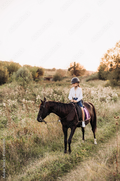 A rider on a magnificent horse, in a beautiful landscape, embodies freedom and harmony