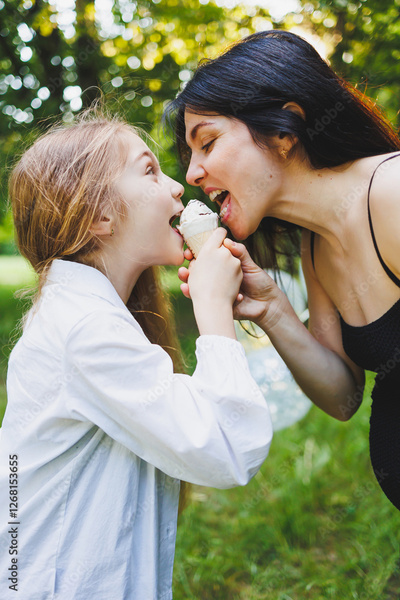 Joyful Moments Delightfully Sharing Ice Cream Together While Enjoying Natures Beauty