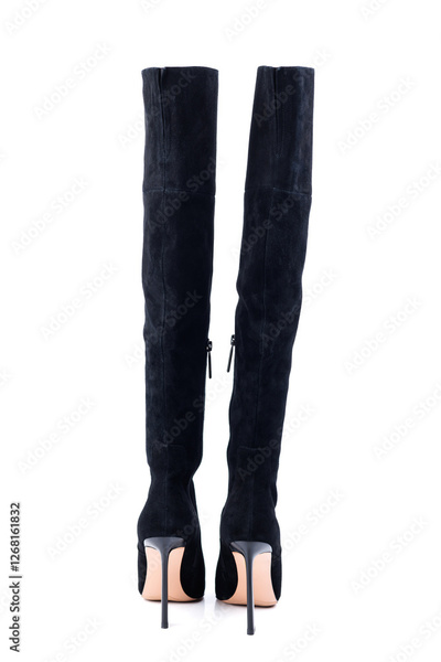 Black women's leather boots. Women's fashionable classic boots.