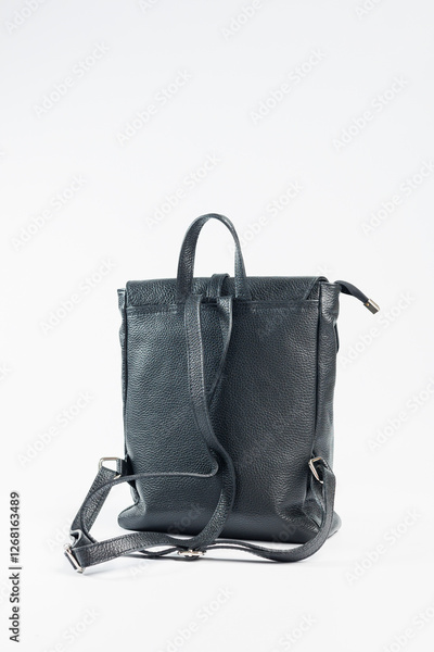 Black backpack women's bag, women's backpack, gray women's backpack. Women's bag isolated on white background. The bag is isolated on a white background.