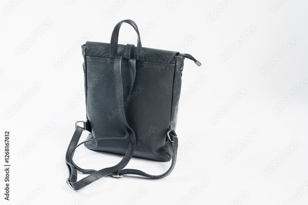 Black backpack women's bag, women's backpack, gray women's backpack. Women's bag isolated on white background. The bag is isolated on a white background.