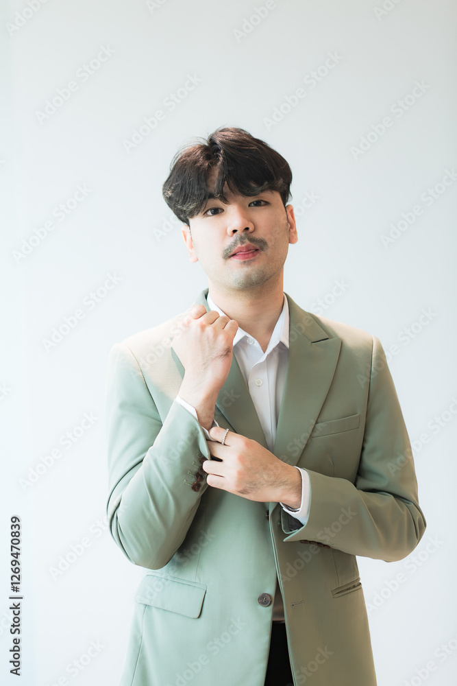Asian businessman,A young office worker in a suit poses with various facial expressions.