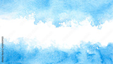 A blue and white watercolor painting of a sky with a white line. The blue and white colors give the painting a calm and peaceful mood