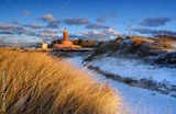 Kołobrzeg, latarnia morska, wydmy, zima, wybrzeże Bałtyku, Polska