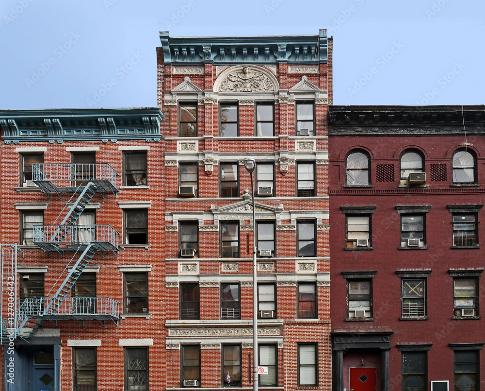 Manhattan Lower East Side apartment building with external fire ladders