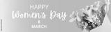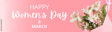 8 March, international women's day, flowers in a pink envelope on a pink background, with text, top view