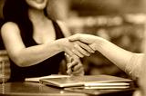Close-up of a confident woman is shaking hands with her client after an informal meeting outdoors.
