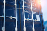 Container door locked with protective lead seal. Shipping Container. Security of cargo shipment. truck transport, logistics freight truck.