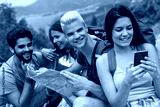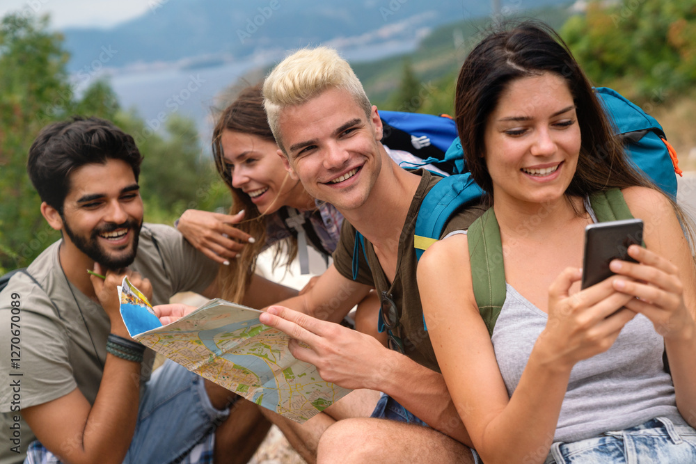 Multiracial best friends having fun outside. Happy friends on road trip have fun at summer vacation