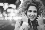 Portrait of young woman standing at the street