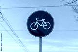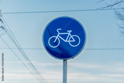 A circular blue sign with a white bicycle symbol marks a dedicated lane for cyclists, promoting safe riding in an open space