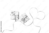 PNG, March 8. Gift boxes with pink ribbon in the shape of a heart, isolated on a white background.
