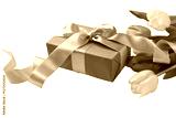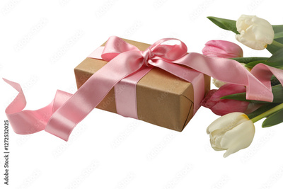 PNG, March 8. Gifts with flowers, isolated on white background.
