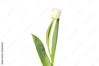 PNG, March 8. White tulip, isolated on white background.