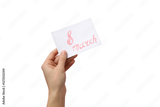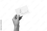 PNG, March 8. Greeting card with greeting in hands, isolated on white background.