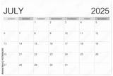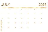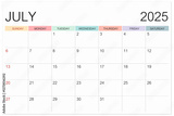 Calendar July 2025 page isolated on white background, Save clipping path.