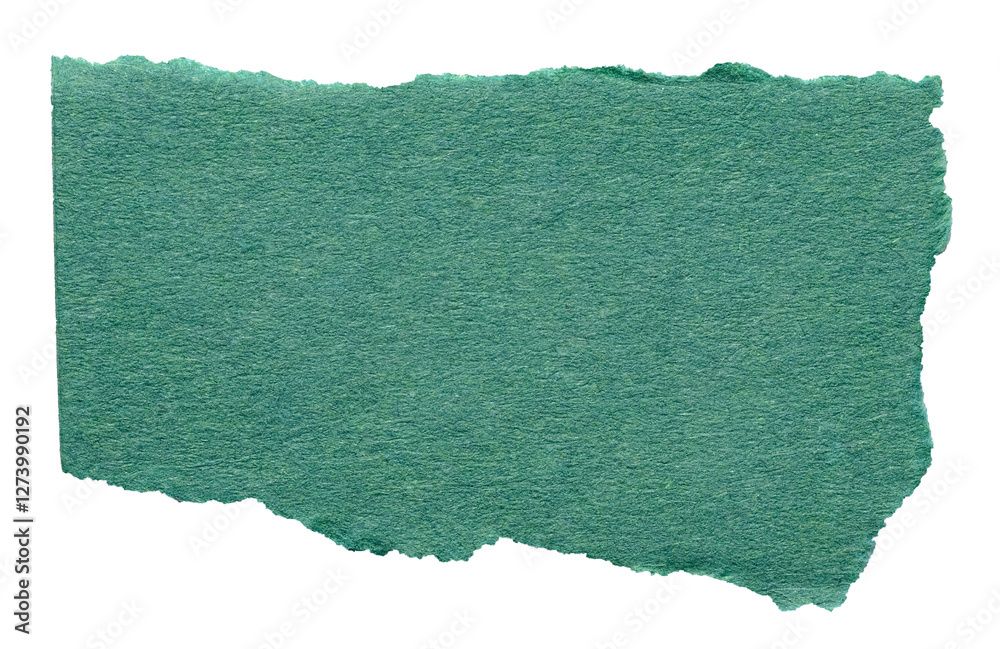 Isolated cut out torn piece of blank green paper note cardboard with texture and copy space for text, transparent png background design element