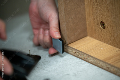 DIYをする日本人女性の手元
