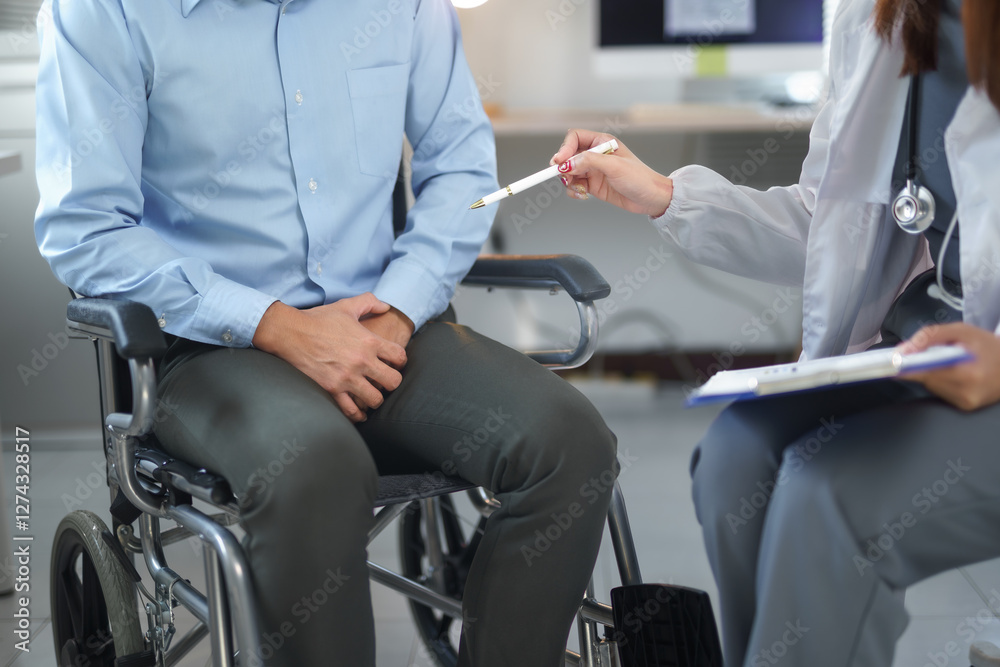 Doctor Consulting Patient in Wheelchair During Medical Appointment