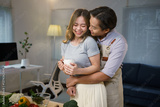 Young Couple Embracing in Kitchen while Preparing Healthy Meal