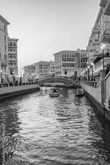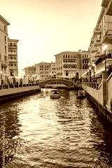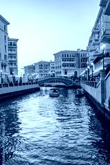 Evening view of the canal and houses in the Pearl Island of Qatar