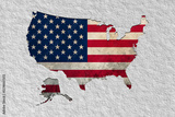 Vector image of an outline map of the United States of America with USA flag enclosed within