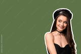 8 March, international women's day, smiling elegant woman on green background, with space for text