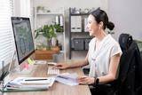 Businesswoman working Financial investment calculate, analyze business and marketing growth on financial document data graph, Accounting, Economic, using desktop computer, commercial concept.