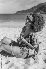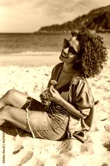 Arab modern young woman enjoying daydreaming on the beach